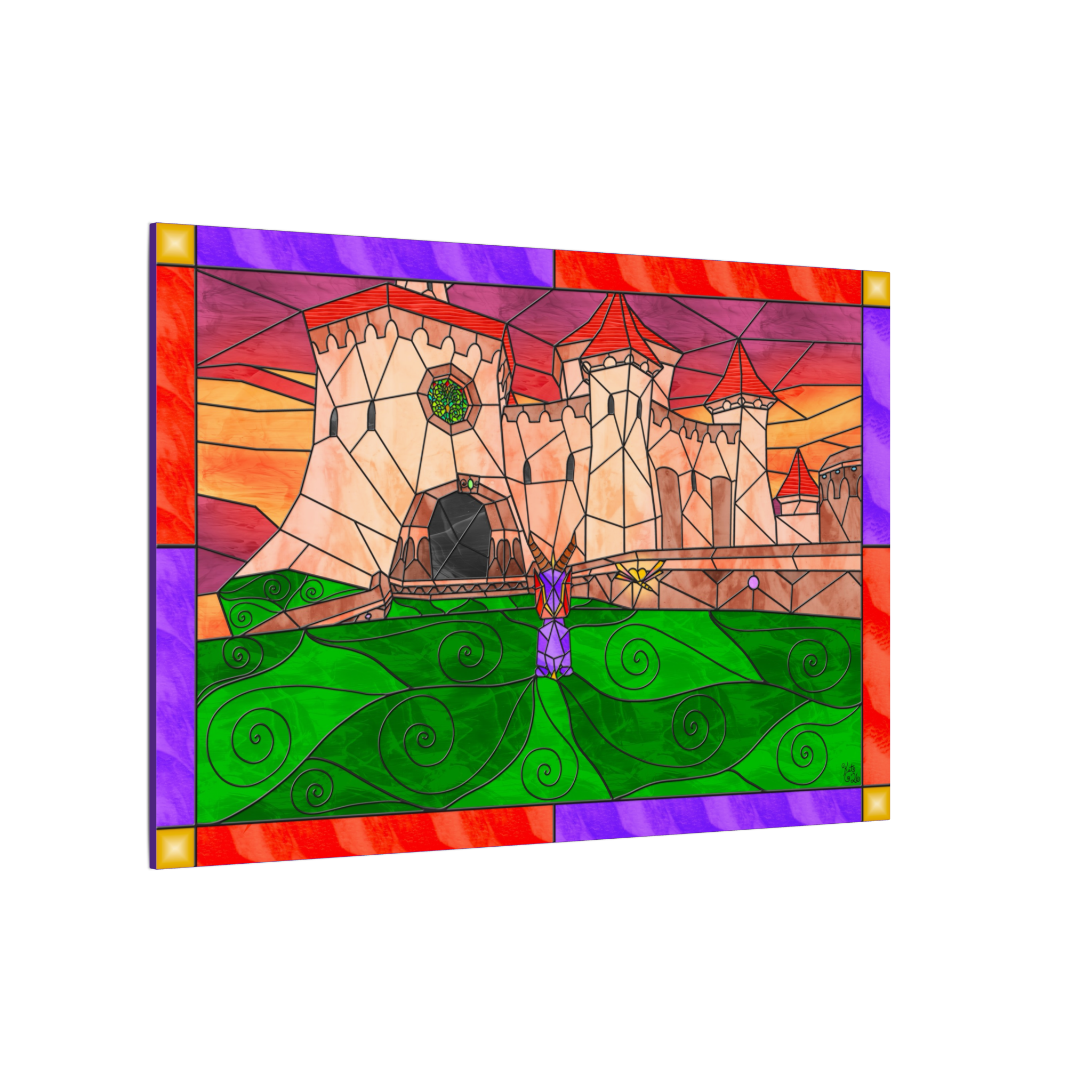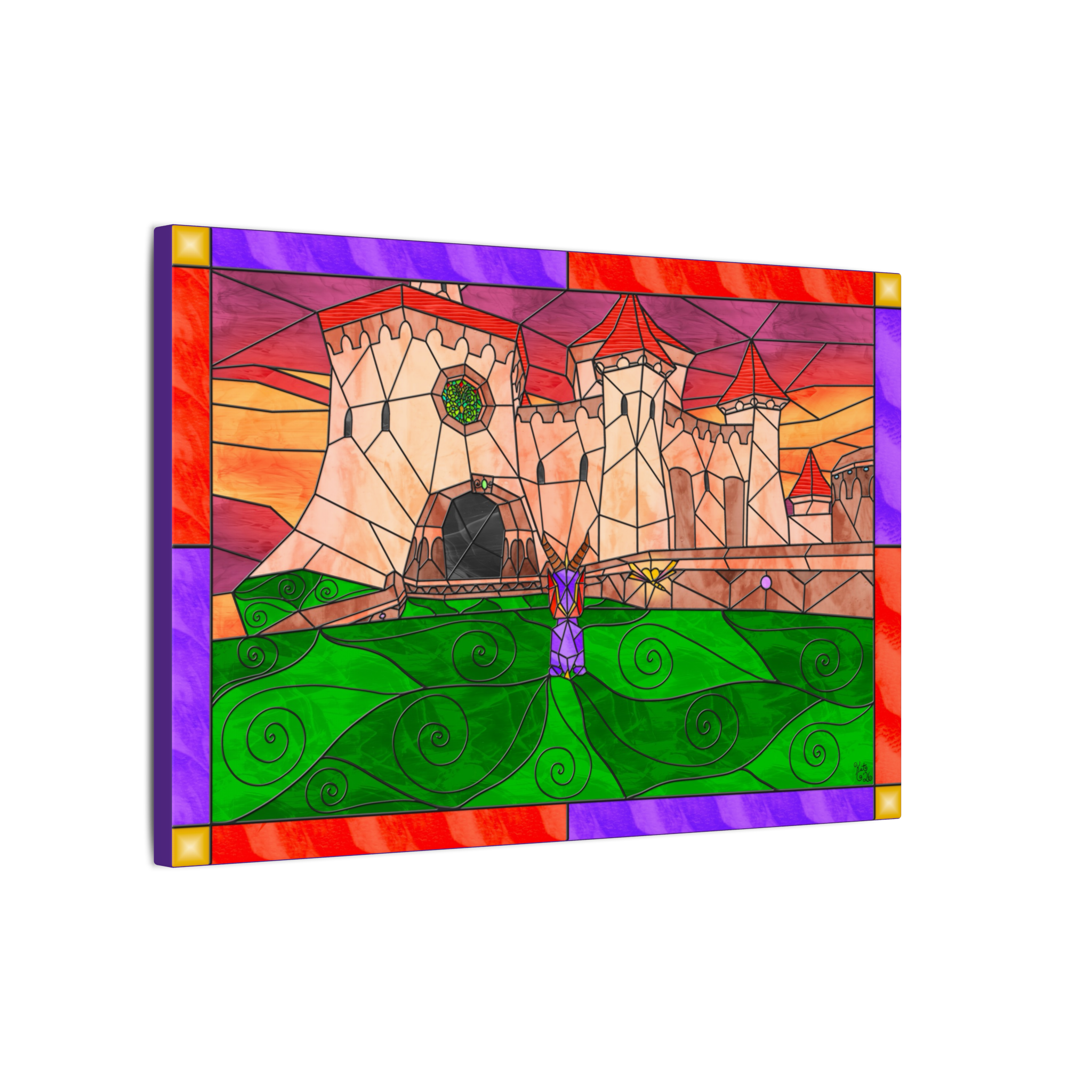 This canvas showcases my personal original artwork, created entirely by me in my signature stained-glass fantasy style. Every architectural detail, color pane, and atmospheric glow was carefully illustrated to bring depth, emotion, and narrative to the piece. This is one-of-a-kind art made entirely by me, making it a truly unique addition to any collection. Each canvas also includes my artist signature, adding authenticity and a personal finishing touch.