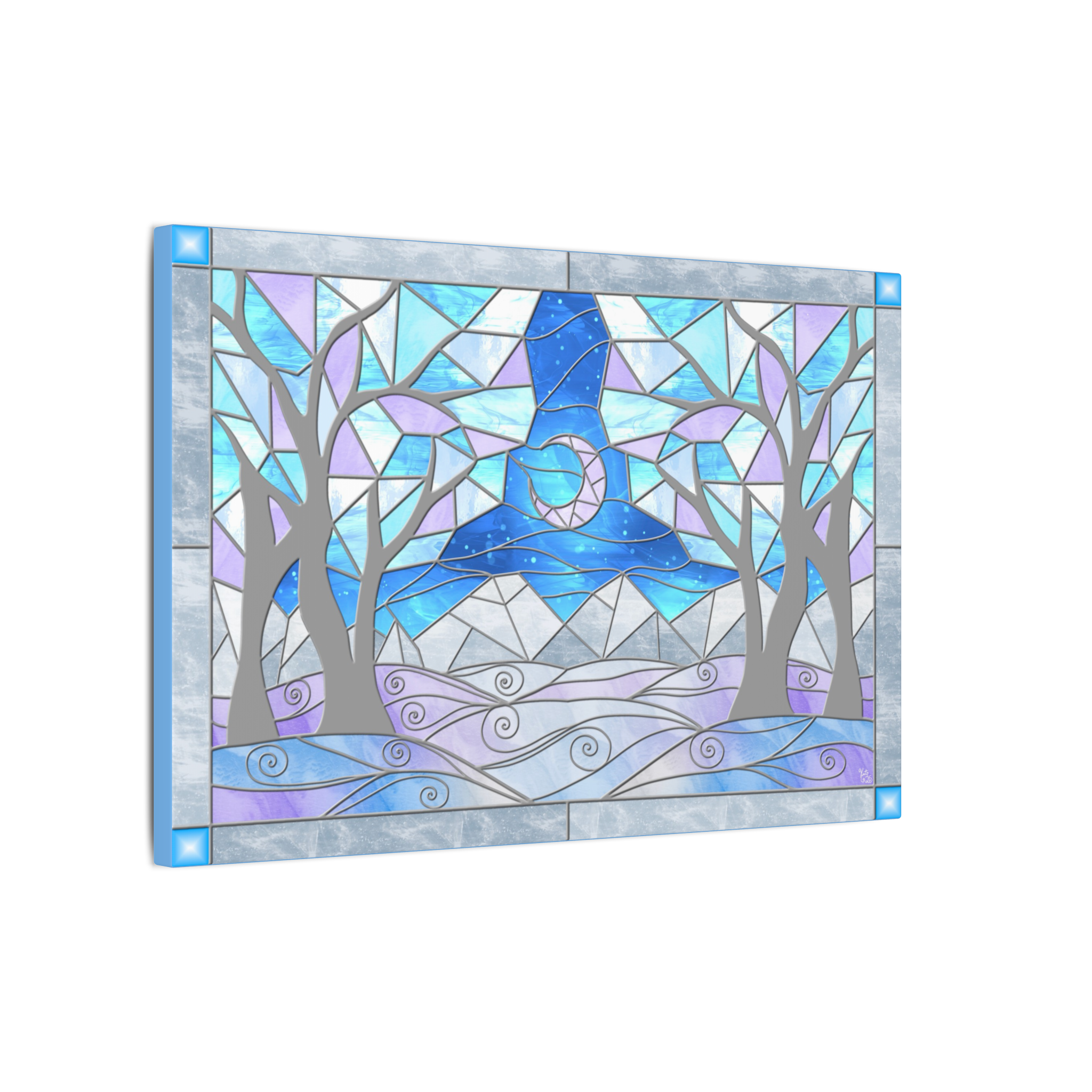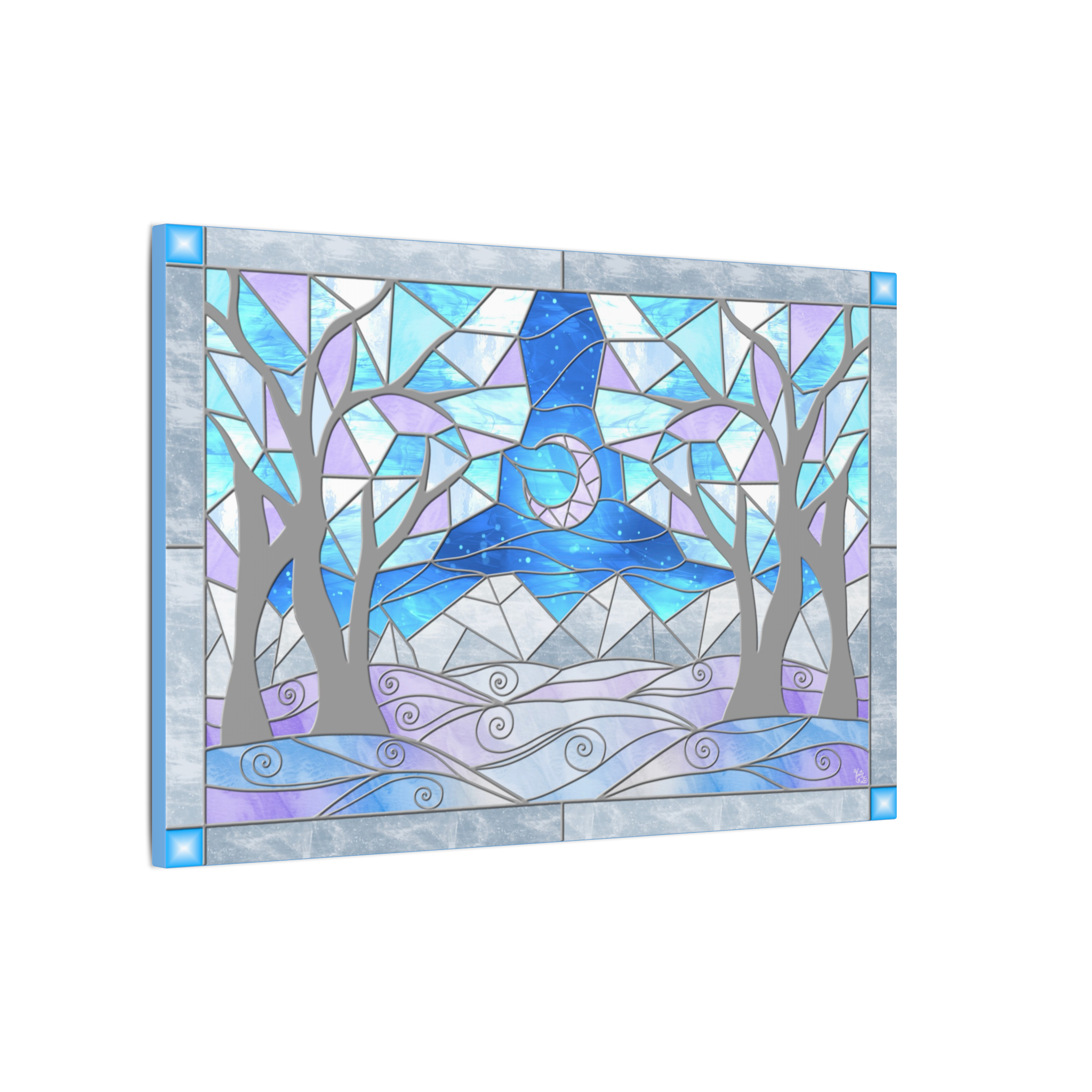 Stained Glass Winter Night Forest Landscape – Original Digital Artwork on Canvas