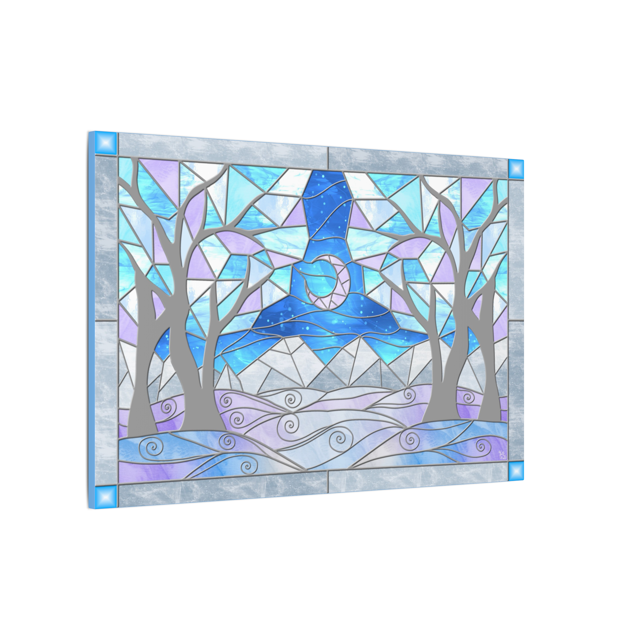 Be the first to review “Stained Glass Winter Night Forest Landscape – Original Digital Artwork on Canvas”